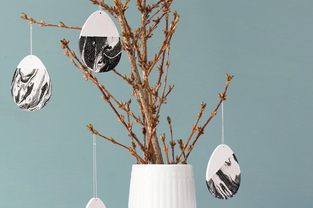 Der Frühling hält langsam aber sicher Einzug und ehe man sich versieht, steht bereits Ostern vor der Tür. Zeit, das Zuhause ein wenig in festliche Stimmung zu versetzen und die Dekoration dem Anlass anzupassen. Daher kommt das Oster-DIY vom Lifestyle Blog PrettyNice für Etsy wie gerufen! Mit ein wenig Farbe wird so aus einem simplen Holzei-Rohling ein toller Hingucker im Marmor-Look, der sich nicht nur als Anhänger am Osterstrauß gut macht, sondern auch als Tischdeko hübsch aussieht. Wer kein Fan von schwarz-weiß ist, kann sich die Marmor-Farben nach Lust und Laune selbst zusammenstellen und so einen ganz persönlichen Touch in die eigenen vier Wände zaubern. Das Schöne - man muss kein DIY-Profi sein um diese Anleitung umzusetzen. Die Oster-Deko für Selbermacher kann in wenigen Schritten fertig gestellt werden, denn das stylische marmorierte Muster entsteht fast von alleine und lässt sich auch von unerfahrenen Eier-Malern kinderleicht auftragen.