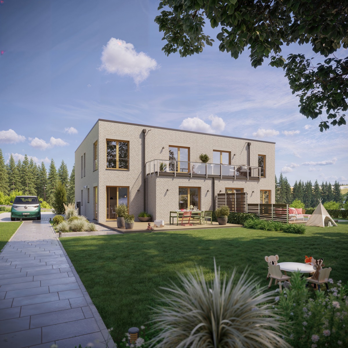 Ob zur Eigennutzung oder als reines Mietprojekt - Mehrfamilienhäuser leisten nicht nur einen wichtigen Beitrag zur Entlastung des angespannten Wohnungsmarktes, sondern stellen auch eine krisensichere Investition dar: Durch mehrere Wohneinheiten wird das Mietausfallrisiko gestreut, während laufende Einnahmen für planbare Cashflows sorgen. Dazu gesellen sich zahlreiche Fördermöglichkeiten und Steuervorteile, was den Bau eines Mehrfamilienhauses in vielerlei Hinsicht rentabel macht. Damit Kundinnen und Kunden diese Vorteile zukünftig optimal nutzen können, bringt Living Haus seine Hausbau-Kompetenz jetzt auch in die Welt der Mehrfamilienhäuser ein.