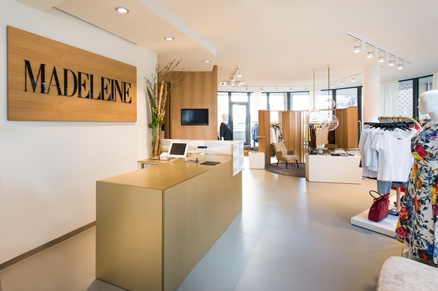 Ein neues Store-Konzept wurde im Zuge der Standortverlagerung entwickelt und realisiert. Bei der Gestaltung des Stores wurde darauf geachtet, dass das Dekor widerspiegelt, wofür MADELEINE steht: erstklassige Qualität, hochwertige Stoffe und zeitgemäße Eleganz. Das Interior Design zeichnet sich vor allem durch Klarheit und die Verwendung von hochwertigen Materialien aus. Der gezielte Einsatz grafischer Elemente setzt weitere optische Akzente, eine Lounge und moderne Deckenlampen runden das niveauvolle Ambiente ab.