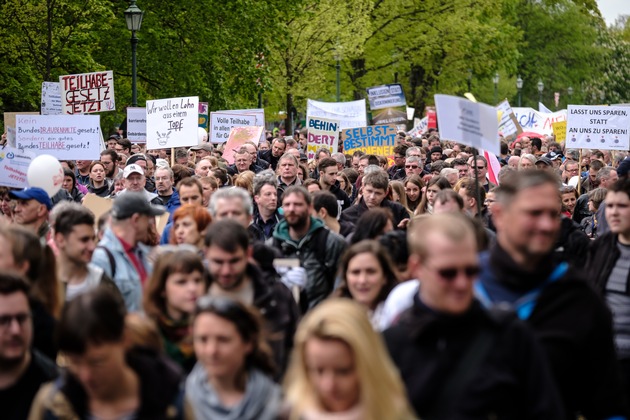 In der letzten Woche wurde nach langen Verhandlungen ein erster Referententwurf zu einem Bundesteilhabegesetz veröffentlicht. Was die Regierungsparteien als "Meilenstein" bezeichnen, ist für viele Menschen mit Behinderungen noch lange kein gutes Teilhabegesetz. Unter dem Schlagwort #NichtMeinGesetz rufen Aktivisten zum Protest auf: "Der Referentenentwurf geht nicht weit genug auf die Forderungen von Menschen mit Behinderungen ein, es drohen sogar Verschlechterungen. Einige können zukünftig zwar mehr als 2.600 Euro sparen, aber diejenigen, die auch auf Hilfe zur Pflege angewiesen sind, werden nach wie vor arm gehalten", erklärt Raul Krauthausen, einer der Initiatoren des Protestes. Aktuell geht es den Aktivistinnen und Aktivisten auch darum, dass private Anbieter von Dienstleistungen und Produkten zur Barrierefreiheit verpflichtet werden, was die CDU/CSU und SPD Fraktionen bisher vehement ablehnen. Das Gesetz zur Weiterentwicklung des Behindertengleichstellungsrechts wird bereits am Donnerstag im Deutschen Bundestag verabschiedet werden. Damit hätten behinderte Menschen auch weiterhin so gut wie keine Handhabe, um gegen Barrieren beim Bäcker, in Geschäften, Restaurants, Cafés oder Kinos vorgehen zu können. "Dieses Gesetz ist die Nagelprobe für die Regierungskoalition, ob sie es mit den Rechten behinderter Menschen wirklich ernst meinen", so Raul Krauthausen. Während am Montag Menschen mit Behinderungen schon lautstark vor den Parteizentralen von CDU und SPD gegen Barrieren und schlechte Gesetze durch Pfeifaktionen aufmerksam gemacht haben, werden sich am Mittwoch Abend ab 17 Uhr AktivistInnen in der Nähe der Grundgesetztafeln am Reichstagsufer anketten und die Nacht lang verweilen. Mitinitiator und Bundesverdienstkreuzträger Krauthausen wird auch dabei sein: "Im Artikel 1 des Grundgesetzes steht: 'Die Würde des Menschen ist unantastbar', aber sie wird bei mir und bei vielen behinderten Menschen am Ende jedes Monats angetastet, wenn man komplett den eigenen Verdienst, den der Lebenspartner und Eltern auch offen legen müssen, weil man nicht mehr als den doppelten Hartz IV-Satz plus Wohnungskosten verdienen darf. Durch den aktuellen Entwurf zum Bundesteilhabegesetz wird sich daran wohl nur wenig ändern." Von den aktuellen Gesetzesvorhaben sind laut Dr. Sigrid Arnade von der Interessenvertretung Selbstbestimmt Leben in Deutschland (ISL) mehrere Millionen Menschen betroffen. Die Einbeziehung behinderter Menschen in die Gesetzgebungsverfahren hätten bisher kaum Wirkung gezeigt. Ganz im Gegenteil man müsse nun sogar gegen Verschlechterungen kämpfen. Deshalb gelte es nun dagegen zu protestieren. Am 4. Mai, dem Europäischen Protesttag behinderter Menschen waren bereits ca. 5.000 Menschen mit und ohne Behinderungen vor dem Kanzleramt und Brandenburger Tor erschienen. Zudem haben über 330.000 Menschen bei Change.org eine Petition zu einem besseren Teilhabegesetz unterschrieben. "Wir hoffen darauf, dass Politikerinnen und Politiker unsere Menschenrechte ernst nehmen und zu deren Achtung entsprechende Gesetze verabschieden. Wir brauchen ein gutes Gesetz zur Weiterentwicklung des Behindertengleichstellungsrechts, dass Barrierefreiheit auch im privaten Bereich vorschreibt, und ein gutes Bundesteilhabegesetz", fordert Raul Krauthausen. Was ist das Bundesteilhabegesetz? Das sogenannte Bundesteilhabegesetz soll die Hilfen für Menschen mit Behinderungen neu gliedern und verbessern. Die meisten dieser Hilfen sind heute im Sozialgesetzbuch festgeschrieben. Das Bundesteilhabegesetz will dieses und weitere Gesetze verändern. Warum ist das Thema so wichtig? Für viele behinderte Menschen sind diese Leistungen die Grundlage für ihr Leben. Ohne diese können sie kein selbstbestimmtes Leben führen. Derzeit gibt es viele Probleme mit den Hilfeleistungen. So ist es oft schwierig, überhaupt einen Anspruch darauf zu erlangen, diesen genehmigt zu bekommen oder angepasst zu kriegen. Dadurch werden viele behinderte Menschen benachteiligt und an einem selbstbestimmten Leben gehindert. Wen betrifft das? In Deutschland leben circa 10,2 Millionen Menschen mit einer anerkannten Behinderung. Schwerbehindert sind davon 7,5 Millionen Menschen. Nicht alle von diesen benötigen die im Bundesteilhabegesetz zu ändernden Hilfen. Rechnet man aber auch Lebenspartner, Eltern und Kinder der Betroffenen hinzu, betrifft es einen großen Teil der deutschen Bevölkerung. Weitere Informationen zum Protest gibt es auf der Aktionsseite: www.nichtmeingesetz.de