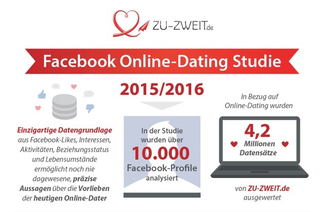 Die weltweit einzigartigen Daten ermöglichen noch nie dagewesene, präzise Aussagen über die Vorlieben und die Persönlichkeit der heutigen Online-Dater. "ZU-ZWEIT.de gibt als einziges Verbraucherportal jedem Online-Dater eine treffsichere Portal-Empfehlung anhand seines Facebook-Profils. Dieser Service ist sehr treffsicher und vollkommen kostenlos" erläutert Chris Pleines, Dating-Experte bei ZU-ZWEIT.de.