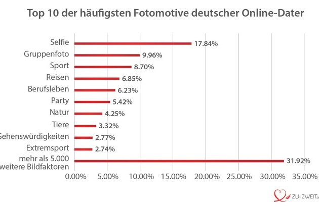 Das unabhängige Online-Dating-Vergleichsportal ZU-ZWEIT.de veröffentlicht die weltweit erste Studie, in der 22 Millionen Online-Dating-Profilbilder einzeln mit einem Deep-Learning-Algorithmus auf 6.000 Bildfaktoren untersucht wurden. Erstmalig werden Daten zu Fotogewohnheiten deutscher und internationaler Singles in einer Studie dargestellt: Von Körperbehaarung über Lieblingslocations bis hin zu Superheldenkostümen, Nilpferden, Gurken und Papstfotos: So zeigen sich deutsche und internationale Singles online.