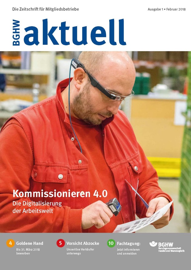 Das Schlagwort Arbeit 4.0 ist zurzeit in aller Munde. Doch was bedeutet das eigentlich für die Unternehmen der Logistik- und Handelsbranche? In der neuen Ausgabe der "BGHW aktuell" wird erklärt, was hinter dem Begriff steckt und wie die Digitalisierung die Arbeitswelt verändert.