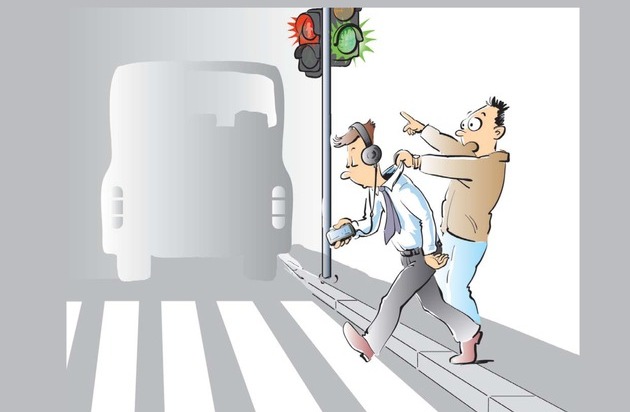 Am Steuer mal eben die neuesten WhatsApp-Nachrichten checken oder eine kurze Antwort per SMS tippen: Wer bei einer Geschwindigkeit von 50 Kilometern pro Stunde nur zwei Sekunden auf sein Handy schaut, ist ca. 30 Meter im Blindflug unterwegs. Gefährlich lebt auch der Fußgänger, der mit dem Handy in der Hand die herannahende Straßenbahn oder die rote Ampel übersieht.
