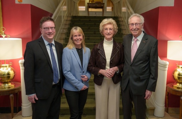 Bildunterschrift: v.l.n.r.: Die diesjährigen Preisträger*innen des Hector Wissenschaftspreises, Iain Couzin und Stefanie Dimmeler, gemeinsam mit den Stifter*innen Josephine und Hans-Werner Hector.