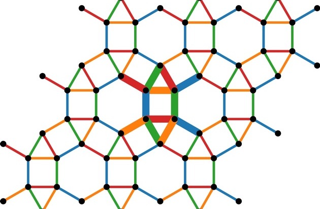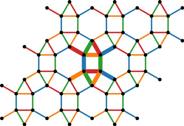 Das Problem: Bevor der Quantencomputer mit seiner eigentlichen Berechnung loslegen kann, ist als erster Schritt eine Art Vorrechnung nötig. Darin wird die Struktur des Quantensystems, das simuliert werden soll, auf die Anordnung der Quantenbits im Computer abgebildet. Das Quantensystem besteht dabei typischerweise aus einem periodischen Gitter, beispielsweise einem Wabengitter. Die Knotenpunkte des Gitters markieren die potenziellen Positionen der Teilchen, während die möglichen Wechselwirkungen durch die Kanten des Gitters dargestellt werden. Der Quantencomputer muss sozusagen berechnen, wie er dieses „Muster“ des simulierten Quantensystems auf die Architektur seiner Quantenbits überträgt. „Diese Rechnung ist komplex – sogar für einen Quantenrechner“, schildert Joris Kattemölle, der inzwischen am Forschungszentrum Jülich und der RWTH Aachen forscht.