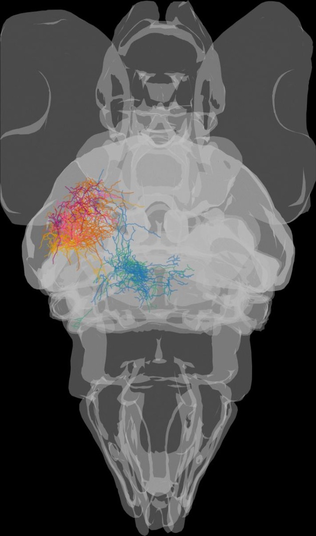 - https://www.uni-konstanz.de/fileadmin/pi/fileserver/2026/follow motion or light_2.png Bildunterschrift: Das Gehirn und die Augen einer Zebrafisch-Larve mit den Neuronen, die mehrere Merkmale für die Entscheidungsfindung zusammenführen. Jede Farbe zeigt einen anderen Schritt in diesem Prozess an. Bild: Katja Slangewal