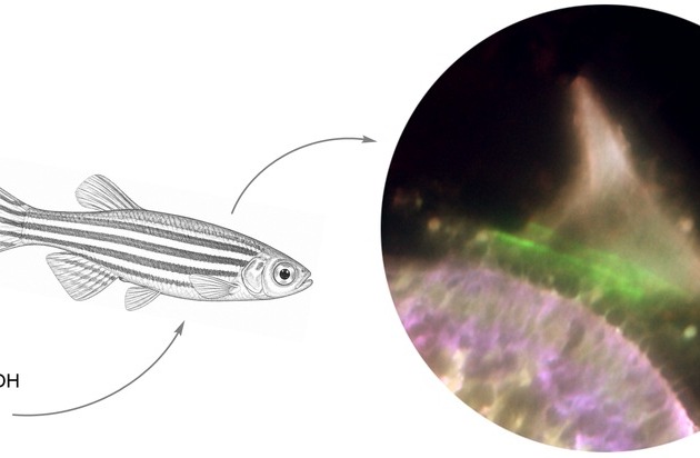 Der Chemiker Valentin Wittmann und der Mediziner Hans Scherer entwickelten nun ein Verfahren, um genau dies zu leisten. Sie verwendeten dafür eine chemische Methode, das sogenannte „Metabolische Glycoengineering“. Vereinfacht gesagt werden winzige Zuckermoleküle chemisch markiert und den Zebrafischen verabreicht, wodurch es zum Einbau der Moleküle u. a. in die Cupula des Innenohrs kommt. Per Fluoreszenz-Verfahren können diese markierten Moleküle anschließend histologisch sichtbar gemacht werden. Auf diese Weise lassen sich physiologische Prozesse im sonst nicht einsehbaren Innenohr anhand der Spur der Zuckermoleküle beobachten.