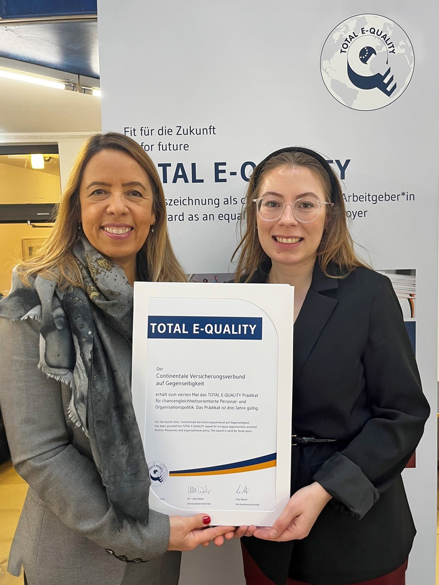 Der unabhängige Verein Total E-Quality zeichnete die Continentale zum vierten Mal in Folge mit dem Prädikat für Gleichstellung von Frauen und Männern aus. Zum Versicherungsverbund gehören die Continentale- sowie die EUROPA-Unternehmen und die Mannheimer. Das Total E-Quality-Prädikat gilt für drei Jahre. Eine weitere Auszeichnung erhielt die Continentale bei einer bundesweiten Umfrage zu Deutschlands bestem Arbeitgeber 2025. Die Untersuchung bescheinigt der Continentale eine hohe Attraktivität als Arbeitgeber.