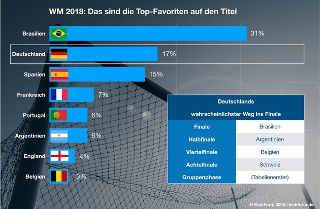Mit der näherkommenden Fußball-WM in Russland haben sich die ansonsten eher für Bundesligaprognosen bekannten Wissenschaftler aus Münster auf ihrer Website KickForm.de beschäftigt.