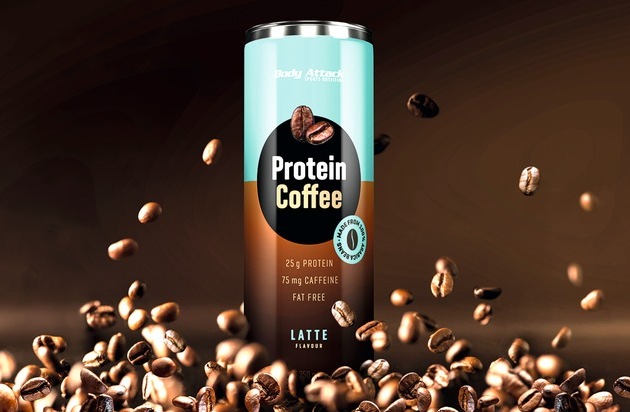 Maximaler Genuss für Kaffee-Fans, Fitness-Freunde und Sportler: Der neue Body Attack Protein Coffee (250 ml) mit extra viel Koffein steht für puren Geschmack - und das ohne Zuckerzusatz, ohne Fett, dafür mit 100% Arabica-Bohnen und 25 g Protein pro Dose. Der Protein Coffee mit Latte Flavour ist ab Mai 2017 im Body Attack Onlineshop und in den Premium Stores erhältlich und kostet pro Stück 1,99 Euro.
