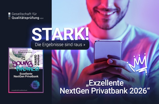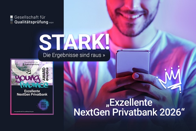 Die Gesellschaft für Qualitätsprüfung mbH veröffentlicht die Ergebnisse des neuen Bankentests "NextGen Privatbank 2026". Aufbauend auf den Erkenntnissen der NextGen Studie 2026 untersucht die Analyse erstmals systematisch, wie gut Privatbanken den Erwartungen einer digital geprägten Kundengeneration gerecht werden.