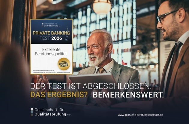 Mit dem Private-Banking-Test "Exzellente Beratungsqualität 2026" setzt die Gesellschaft für Qualitätsprüfung den Standard für Beratungsqualität und gibt Verbrauchern eine klare Orientierung bei der Suche nach einem geeigneten Private-Banking-Anbieter.
