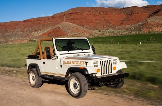 Am 13. Mai 1986 debütierte der Wrangler (YJ) als Nachfolger der seit Kriegsende 1945 gebauten, legendären CJ-Baureihe, die wiederum unmittelbar auf den ersten leichten Geländewagen der Welt zurück geht, den Willys-Overland MB. Der Wrangler erhielt sein bis heute charakteristisches Design vom 1953 vorgestellten Willys-Overland M38A1 und dessen Zivilversion CJ-5 - der wesentlich zur Wandlung des Geländewagens zum Lifestyle-Fahrzeug und damit zur Entstehung des SUV-Segments beigetragen hat. Der Wrangler nahm diese Entwicklung auf und war von vorn herein als Freizeit-Geländewagen konzipiert. Viele Fahrwerkskomponenten waren vom SUV-Modell Cherokee abgeleitet und Komfort stand beim Wrangler nun ganz oben auf der Prioritätenliste. Um diese grundlegende Veränderung auch optisch zu symbolisieren, erhielt der Wrangler (YJ) eckige statt wie bisher runde Scheinwerfer.