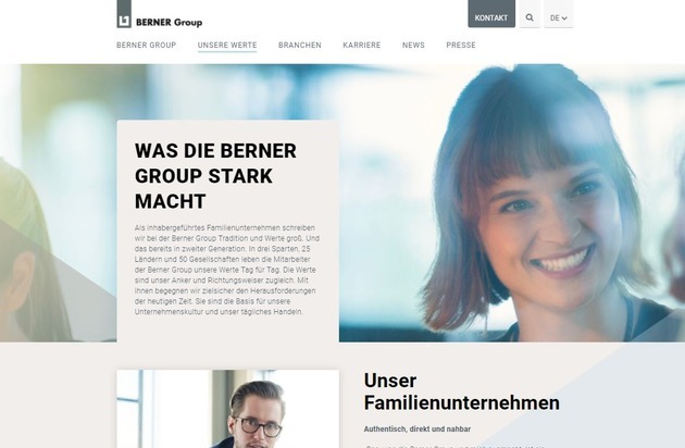 Dieser positive und starke Wandel der Unternehmensgruppe fand sich in der bisherigen Außendarstellung nicht wieder. Das ist jetzt vorbei. Die Entwicklungsschritte, die die Berner Group in den vergangenen fünf Jahren durchlaufen hat, sind ab sofort auf der Homepage erlebbar. Der Nutzer bekommt mit zahlreichen anschaulichen Beispielen jetzt einen deutlich besseren Eindruck davon, wofür die Berner Group steht und was sie unter "bedingungsloser Kundenorientierung" versteht.