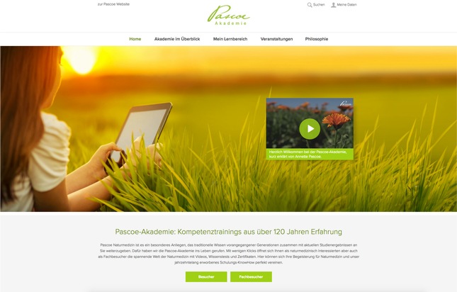 "Auch Fachkreise kommen auf ihre Kosten: Ein besonderer, DocCheck-geschützter Bereich hält Angebote bereit, die auf die speziellen Bedürfnisse von Ärzten, Heilpraktikern und weiteren Fachkreisangehörigen ausgerichtet sind", erläutert Annette Pascoe. "Experten aus Forschung und Praxis geben ihren Kolleginnen und Kollegen den großen Wissensschatz weiter." Besuchen Sie die Pascoe Akademie unter www.pascoe-akademie.de und werden Sie kompetenter Ratgeber in Sachen Naturmedizin.
