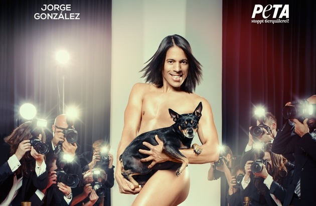 "Hola Chicas y Chicos!": Jorge González sprüht vor Charme. Jetzt zeigt sich der Let's Dance-Juror, Catwalk-Trainer und Choreograf in einem Anti-Pelz-Motiv für die Tierrechtsorganisation PETA Deutschland e.V. Und dabei geizt er nicht mit seinen Reizen: Splitternackt und nur mit seinen legendären High Heels bekleidet schreitet der gebürtige Kubaner über den roten Teppich. Auf dem Arm sein Hund Willie, der vor Jahren aus einer mallorquinischen Mülltonne gerettet wurde. Der Slogan "So trägt man Pelz" - warm, glücklich und lebendig. Im Making-of-Video des Shootings zeigt Jorge González die brutale Realität der Hunde- und Katzen-Pelzproduktion und appelliert an alle Verbraucher, pelzfreie Modeentscheidungen zu treffen.