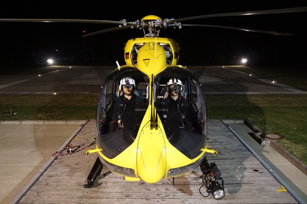 Bei so einem Notfalleinsatz wird der komplette Landeanflug an einem unbeleuchteten Landeplatz in der Nähe des Notfallortes mit Nachtsichtbrillen durchgeführt. Die rund 11.000 Euro teuren Brillen funktionieren nach dem Prinzip der Restlichtverstärkung und bilden mit dem Cockpit und dem Helm ein aufeinander abgestimmtes Nachtflugsystem. So können Piloten auch bei minimalen Lichtverhältnissen an Unfallorten landen, deren Geländebesonderheiten mit bloßem Auge und Scheinwerferlicht nicht erkennbar und Landungen entsprechend zu gefährlich wären.
