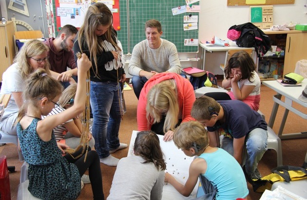 Münster, 13. Juli 2017. Die Auszubildenden der Westfälischen Provinzial Versicherung überreichten 1.000 Euro an die Regenbogenschule. Die Münsterlandschule profitiert ebenfalls von dem Engagement und schafft neue Unterrichtsmaterialien im Wert von 300 Euro an. Seit vielen Jahren organisiert das erste Lehrjahr der Provinzial ein soziales Projekt. "In unserer Ausbildung ist soziales Engagement ein fester Bestandteil. Dadurch lernen die Auszubildenden Verantwortung zu übernehmen und erweitern ihre soziale Kompetenz", sagt die Generalbevollmächtigte Personal Beatrice von Brauchitsch. Dieses Mal planten sie dafür schon im November. Die Azubis organisierten einen Nikolausverkauf an Kollegen, bei dem rund 2.000 Euro zusammenkamen. 1.000 Euro überreichten sie in Form einer Geldspende am Dienstag an die Regenbogenschule. Auch eine Projektwoche im April wurde von diesem Geld finanziert. Dabei lernten die Auszubildenden die Schüler bei gemeinsamen Aktionen näher kennen. Backen, Basteln und ein Besuch der Feuerwehr ließen die Hemmschwelle schnell sinken. Die Münsterlandschule hingegen hatte ein Anliegen das mit dem Geld bereits verwirklicht wurde: Neue Unterrichtmaterialien, wie ein Europapuzzle und Rechenketten. Für die Regenbogenschule steht der Verwendungszweck des Geldes auch schon fest: Rund 100 Schüler der Grundstufe werden nach den Sommerferien einen Ausflug zum Planetarium machen. "Da der Transport unserer Schüler ein großer Aufwand ist, freuen wir uns besonders über die Spende der Provinzial", so Stufenleitung Monika Aschemann. Die Auszubildenden werden bei dem Ausflug auch wieder dabei sein.