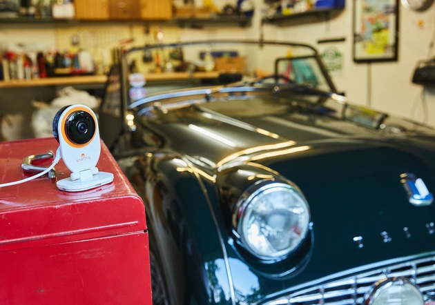Smartfrog hat eine einfache und günstige Komplettlösung für die Heimüberwachung entwickelt - inklusive App, IP-Kamera und Video-Cloudspeicher. Die Überwachungskamera mit Nachtsichtmodus, Bewegungsmelder, Alarmfunktion sowie Mikrofon und Lautsprecher ist innerhalb von fünf Minuten installiert. "Sobald sich in der Garage etwas bewegt oder ein Geräusch entdeckt wird, erhält man eine Benachrichtigung per E-Mail oder Push-Nachricht auf sein Smartphone. "Sollten sich Fremde Zutritt verschaffen, kann man sofort die Polizei verständigen", erklärt Wild.