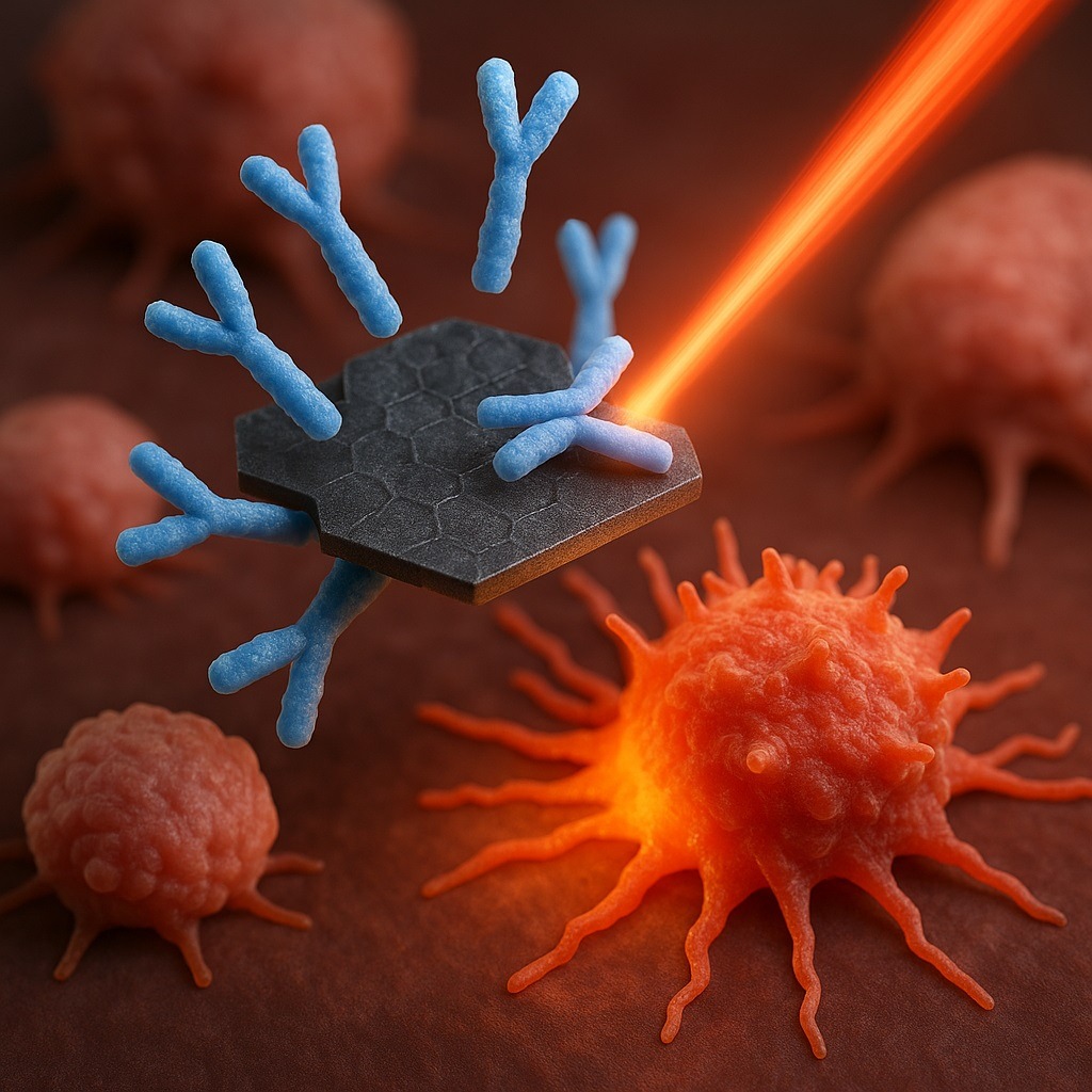 Diese neuartigen MXen-Antikörper-Konjugate haben die Funktion, Tumorzellen gezielt zu erkennen und zu binden. Wird das Tumorgewebe anschließend mit Infrarotlaser bestrahlt, wandeln die MXene das Licht in Wärme um. In dieser sog. photothermalen Tumortherapieansatz werden die Krebszellen lokal überhitzt und zerstört, ohne umliegendes gesundes Gewebe zu schädigen.