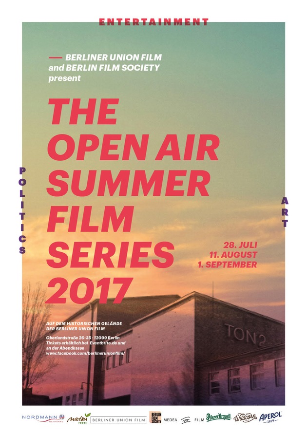 Die Berliner Union-Film zeigt im Rahmen des OPEN AIR SUMMER FILM SERIES an drei Tagen von Juli bis September eine Filmreihe auf dem historischen Gelände in der Oberlandstraße. Start ist der 28. Juli 2017. Pro Abend werden zwei Filme mit den Schwerpunkten Kunst, Politik und Entertainment vorgeführt.