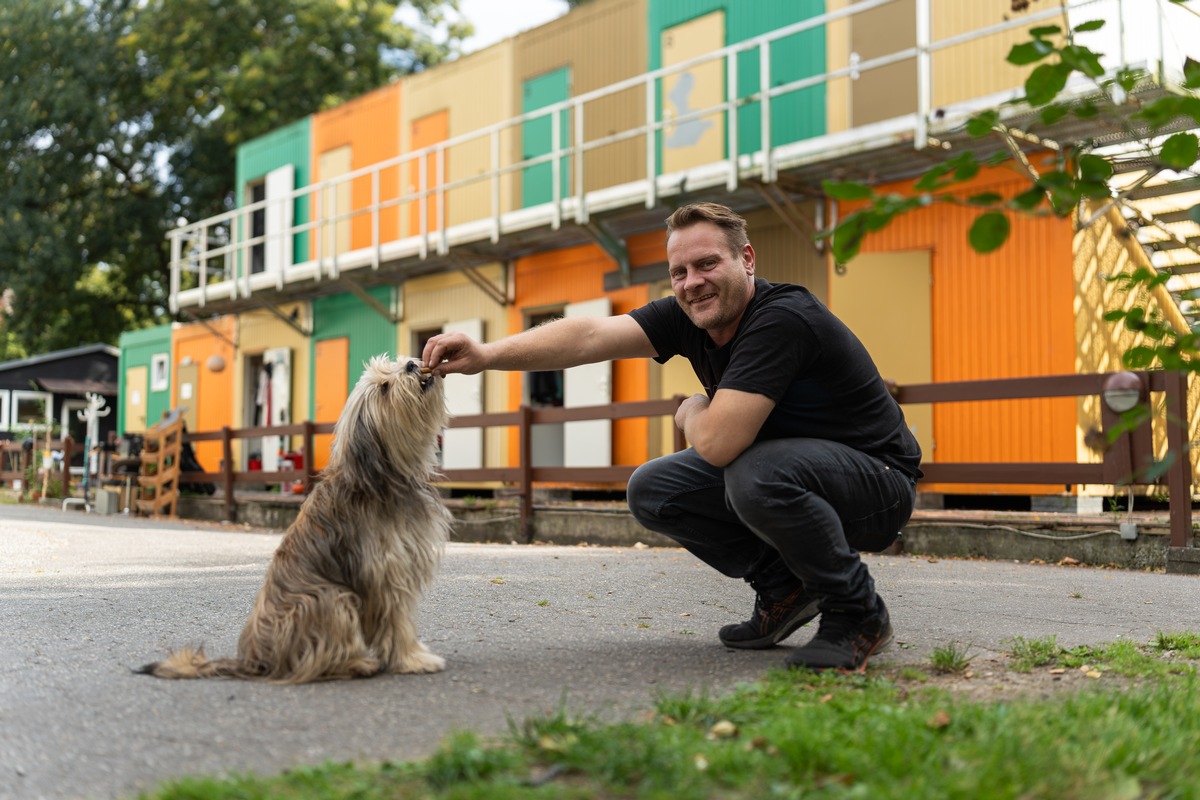"Der Hund muss sozial verträglich sein, was aber bei den allermeisten Hunden von obdachlosen Menschen der Fall ist", sagt Maren Siewert, die das Jakob-Junker-Haus an der Borsteler Chaussee in Hamburg leitet. Sie hat im Hof des Gebäudes 16 Wohncontainer für Menschen aufgestellt, die auf der Straße mit ihrem Hund unterwegs sind.