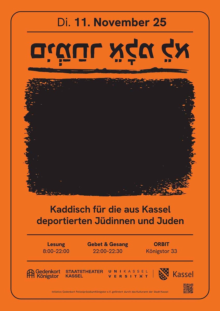Mit einer mehr als vierzehnstündigen Gedenkveranstaltung erinnert die Initiative Königstor am 11. November gemeinsam mit Universität und Staatstheater Kassel an die Deportation Kasseler Jüdinnen und Juden.