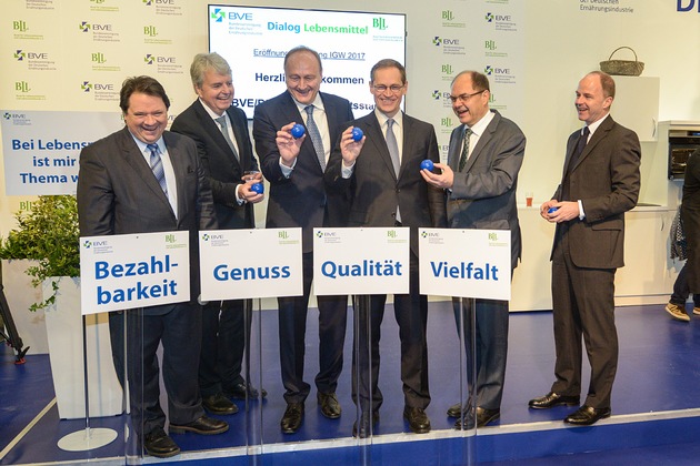 Die Bundesvereinigung der Deutschen Ernährungsindustrie (BVE) und der Bund für Lebensmittelrecht und Lebensmittelkunde (BLL) konnten gleich zu Beginn der Internationalen Grünen Woche (IGW) hohen politischen Besuch an ihrem Gemeinschaftsstand begrüßen. Prominent eingeläutet wurde der "Dialog Lebensmittel" von Christian Schmidt, Bundesminister für Ernährung und Landwirtschaft, sowie Michael Müller, Regierender Bürgermeister von Berlin, die den Stand während des heutigen Eröffnungsrundgangs besuchten.