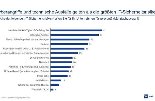 Düsseldorf, 16. April 2026 – Cyberangriffe bleiben eine der größten Bedrohungen für deutsche Unternehmen – doch viele Sicherheitslücken sind hausgemacht. Das zeigt die aktuelle YouGov-Studie „Digitalisierungsbedarfe von Unternehmen 2026" im Auftrag von 1&1 Versatel, für die 533 Entscheidungsträger in deutschen Unternehmen befragt wurden.