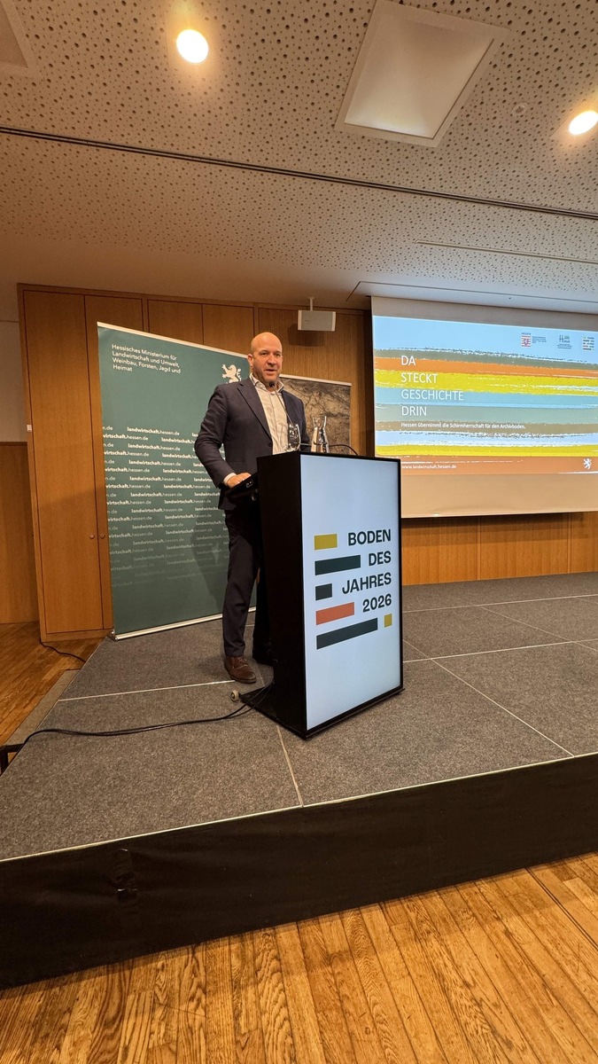 „Archivböden sind unsere wichtigsten Verbündeten, um mehr Aufmerksamkeit auf die Welt unter unseren Füßen zu lenken“, ergänzt Prof. Dr. Thomas Schmid, Präsident des HLNUG und Laudator bei der Festveranstaltung zum Weltbodentag in der Hessischen Landesvertretung in Berlin. „Sie liefern faszinierende Informationen über frühere Umwelt- und Lebensbedingungen und helfen uns, die Vergangenheit zu verstehen – und daraus für die Zukunft zu lernen. In Hessen gibt es viele dieser Böden, die Geschichten erzählen, und viele engagierte Mitstreitende, die sich für den Bodenschutz stark machen.“