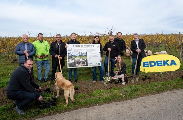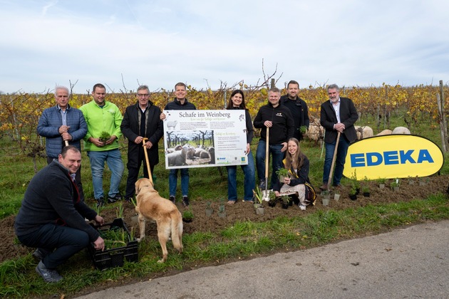 Schallstadt/04.11.2025 – Mit einer neuen Pflanz- und Pflegeaktion setzen der Ortenauer Weinkeller, Produktionsbetrieb von Edeka Südwest, und die Stiftung NatureLife-International ihr gemeinsames Engagement für mehr Artenvielfalt im Weinberg fort. Bereits zum 10. Mal fand das Projekt „Lebendiger Weinberg“ statt, bei dem standorttypische Kräuter und Stauden in Rebflächen eingebracht werden. Unterstützt wurde die Initiative in diesem Jahr von der Edeka-Kaufmannsfamilie Brand, der Erzeugergemeinschaft Württemberger Lamm sowie Lammprinzessin Jana Zehnle. Die zusätzliche Schaf-Beweidung der Rebhänge von Winzer Florian Kuhn aus Munzingen verstärkt den positiven Effekt der Bepflanzung.
