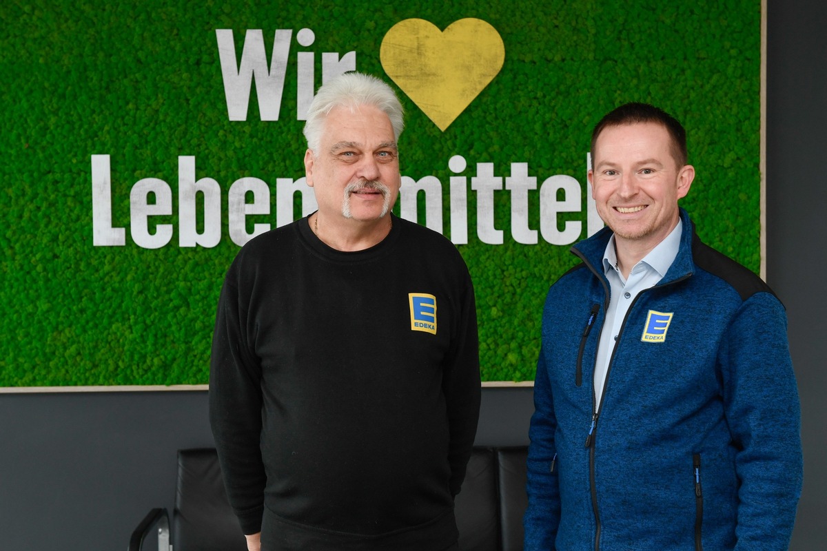 Heddesheim/20.11.2025 - Für seine 40-jährige Betriebszugehörigkeit bei Edeka Südwest wurde jetzt Jürgen Donner aus Nußloch geehrt. Robert Kucher, Lagerleiter Trockensortiment am Edeka Südwest-Standort Heddesheim, gratulierte dem Jubilar und überreichte ihm eine Urkunde sowie ein Präsent als Dankeschön.