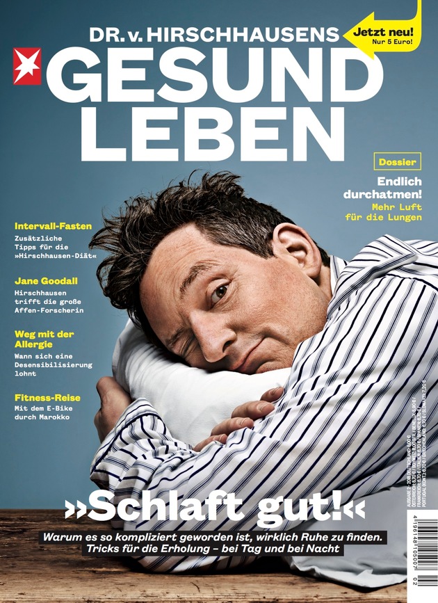 Der "Doktor der Nation" Dr. Eckart von Hirschhausen verrät in der zweiten Ausgabe des Gesundheitsmagazins DR. v. HIRSCHHAUSENS STERN GESUND LEBEN mit dem Titelthema "Schlaft gut!" (2/18, seit 14. März im Handel) das Geheimnis seiner Power: der Power-Nap. Wie tankt Eckart von Hirschhausen Energie für seine Bühnenshows am Abend? "Vor dem Stand-up kommt das Lay-down. Um einen Raum mit 2000 Menschen am Lachen, Nachdenken und Zuhören zu halten, muss ich hellwach sein.