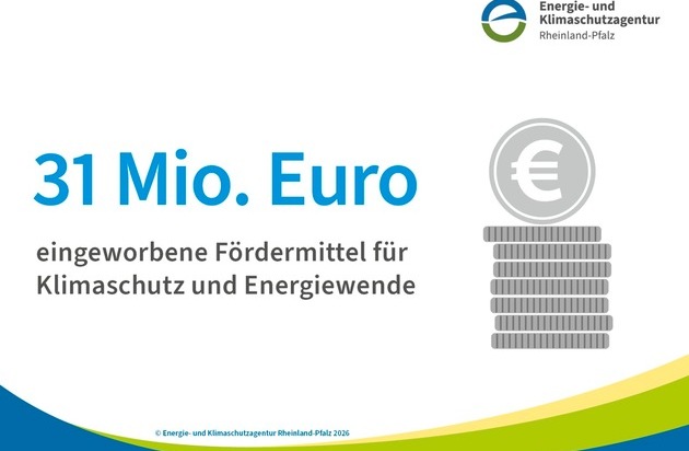 Rund 31 Mio. Euro* an Fördermitteln haben rheinland-pfälzische Kommunen in Zusammenarbeit mit der Energie- und Klimaschutzagentur Rheinland-Pfalz 2025 für Klimaschutz- und Energiewende-Maßnahmen eingeworben. Mit diesen Mitteln wurden insgesamt Investitionen in Höhe von knapp 71 Mio. Euro ausgelöst.