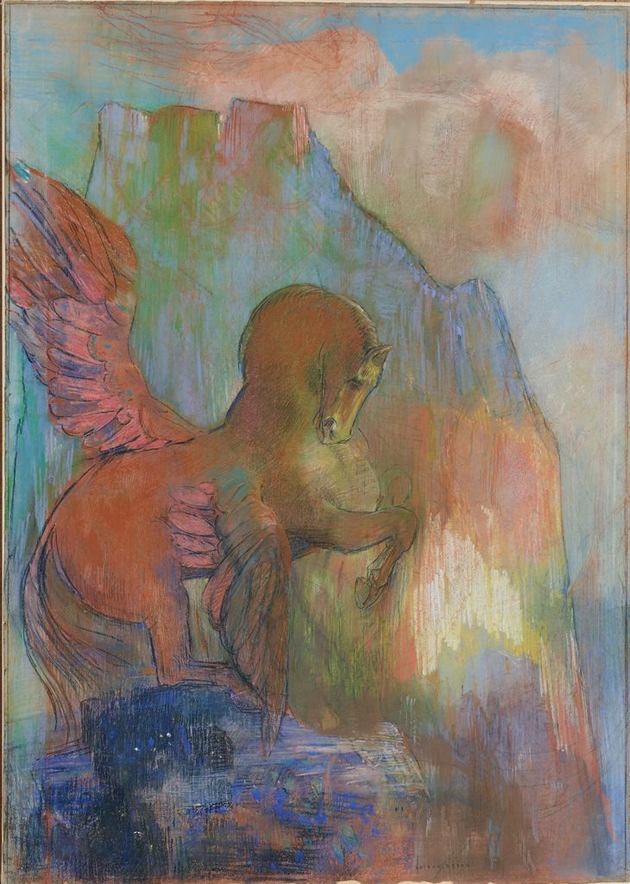 Redon findet seine Inspiration in literarischen und musikalischen Quellen von der klassischen Antike bis hin zu Richard Wagner. Die Ausstellung verdeutlicht dies anhand einer Reihe spezifischer Themen. Dazu gehören zum Beispiel das geflügelte Pferd (Pegasus) oder die Frau, die einerseits als Symbol der Schönheit (Beatrice), andererseits in Gestalt der fatalen Verführerin (Salome) auftritt. Redon verarbeitet diese Themen stets aufs Neue, ändert ihre Erscheinungsform und verleiht ihnen immer wieder neue Bedeutung und Assoziation.