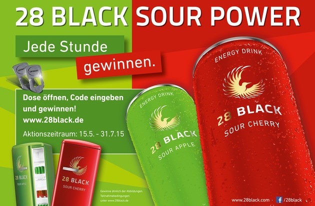 Das Gewinnspiel und die neuen Sour-Sorten Apple und Cherry werden dem Verbraucher über eine reichweitenstarke Media-Kampagne bekannt gemacht. Dazu gehören TV-Werbung, Anzeigenschaltungen, eine eigene Aktionsseite unter www.28black.de und Social Media-Aktivitäten. Direkt am POS aktiviert 28 BLACK die Aktion über Außenwerbung mit Riesenpostern und farbenfrohe Displays in den Sour-Farben Rot und Grün.