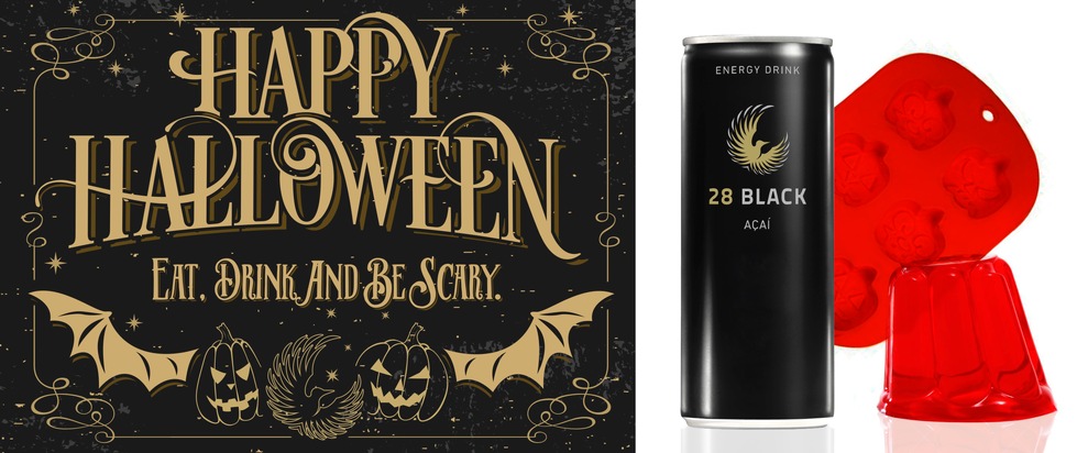 Wichtiger Faktor für eine gespenstisch gute Party ist das Halloween-Buffet. Wenn der Kürbis in eine schaurig leuchtende Maske verwandelt und sein Inneres zu Gruselsuppe und anderen Horrorsnacks verarbeitet wurde, fehlt nur noch das passende Dessert. Wer hier bei seinen Gästen für eine richtige Gänsehaut sorgen will, liegt mit dem Energy Drink 28 BLACK Açaí und einem glibberigen Pudding aus Drachenblut genau richtig. Einfach eine Packung rote Götterspeise nach Packungsanleitung mit zwei Dosen 28 BLACK Açaí und ohne Zucker zubereiten, in einer Puddingform mit monsterhaften Kürbisgesichtern erstarren lassen und das Grauen ist nicht mehr zu stoppen. Wer für seine Halloween-Party noch eine Pudding-Form mit garantiertem Gruselfaktor braucht, der hat jetzt die Chance, mit 28 BLACK Açaí eine furchterregende Motivform aus Silikon zu gewinnen. 28 BLACK verlost unter allen Kunden, die in der Zeit vom 06.10. bis 25.10.15 im Online-Shop unter www.28black.de den blutroten Energy Drink 28 BLACK Açaí bestellen, Silikonformen zusammen mit einem 4-Pack 28 BLACK.