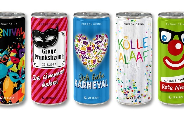 Jecken und Narren erwarten sie schon lange - die fünfte Jahreszeit. Bald ist es wieder soweit, dann darf in den Karnevalshochburgen ausgelassen gefeiert werden. Ob Kappensitzungen, Straßenumzüge oder Partys - das Programm ist vielfältig und die Tage (und Nächte) dementsprechend lang. Die nötige Energie während der närrischen Zeit liefert zum Beispiel 28 BLACK, der andere Energy Drink. Und für alle, die nicht nur ein kreatives Kostüm, sondern eine ebenso individuelle Dose haben möchten, hält 28 BLACK ein besonderes Angebot bereit. Unter www.your28black.com gibt es die Möglichkeit, die Dose einfach mit nur wenigen Klicks ganz nach den eigenen Wünschen und Vorstellungen zu gestalten. Hierfür stehen neue Icons zum Thema Fasching zur Auswahl, es gibt aber auch die Option, eigene Fotos, Bilder oder Designvorlagen zu nutzen.