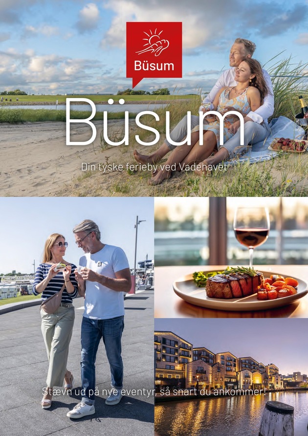 Din tyske ferieby ved Vadehavet ist der Titel der neuen Imagebroschüre in dänischer Sprache, die die Tourismus Marketing Service Büsum GmbH (TMS Büsum) zur Urlaubssaison 2026 veröffentlicht. Die Erstauflage der mit „Blauem Engel“ zertifizierten DIN A4-formatigen Broschüre, die zwölf Seiten umfasst, beläuft sich auf 2.000 Exemplare. Die Verteilung erfolgt schwerpunktmäßig auf der Messe Ferie for alle in Herning, Dänemark (20.–22.02.2026), um die dänischen Nachbarn gezielt anzusprechen.