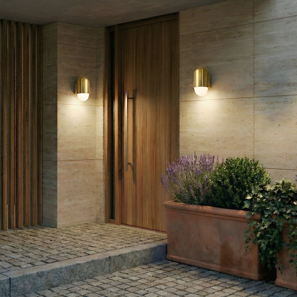 Glänzende Oberflächen bringen einen Hauch von Glamour ins Freie. Ob Messing, Bronze, Kupfer oder verzinkter Stahl: Metallic-Töne verleihen Wege- und Wandleuchten eine edle, zeitgemäße Ausstrahlung. Je nach Lichteinfall changieren die Oberflächen zwischen warmem Schimmer und kühler Eleganz und setzen gezielte Highlights entlang von Wegen oder an Eingängen. Besonders harmonisch wirken sie zu modernen Fassaden, Glas- und Steinelementen. So entsteht ein spannendes Wechselspiel aus Funktionalität und luxuriösem Finish.