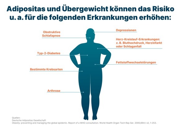 Mehr als die Hälfte der Erwachsenen in Deutschland ist übergewichtig, und rund ein Viertel hat Adipositas[1] . Ein dauerhaft erhöhtes Körpergewicht kann viele gesundheitliche Probleme verursachen - etwa für Herz und Kreislauf, den Stoffwechsel, die Verdauung oder das Nervensystem[2]. Wird das Gewicht zur Belastung, kann Abnehmen entscheidend für die eigene Gesundheit sein.