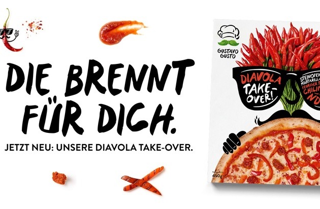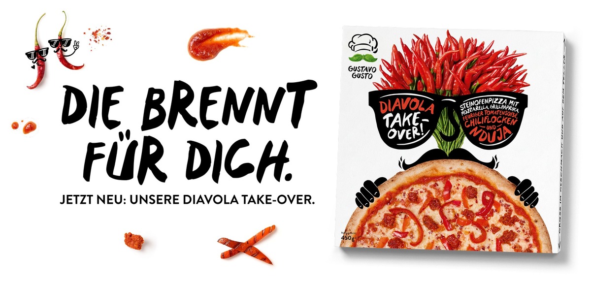 "Endlich eine Pizza, die für dich brennt! Die neue Diavola Take-Over zeigt geschmackvoll, dass auch Tiefkühlpizza richtig Feuer haben kann.", sagt Michael Götz, CMO von Gustavo Gusto.