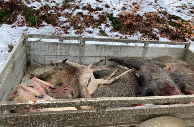 Nicht weidgerecht sind spätestens ab Weihnachten auch die vom Hessenforst durchgeführten Drückjagden auf Schalenwild, d.h. Huftiere wie Hirsche, Rehe und Damwild. Aufgrund des in der Regel knappen Futterangebots kann das Wild deutlich weniger Nahrung und darüber hinaus nur solche von geringerer Qualität aufnehmen als während des restlichen Jahres. Zur Energieeinsparung reagiert das Wild mit physiologischen und anatomischen Anpassungen. [2] Um im Winter Energie zu sparen, reduziert das Rotwild (Hirsche) seine Bewegungsaktivität um bis zu 40 Prozent, die Körpertemperatur kann dabei durch die geringere Durchblutung der Körperteile auf bis zu 15 Grad sinken, die Herzfrequenz fällt um bis zu 60 Prozent und damit auch die Stoffwechselrate. Die Verringerung der Körpertemperatur reduziert zugleich die Bewegungsfähigkeit der Gliedmaßen des Wildes. [3] In dieser Situation die Tiere durch großangelegte Bewegungsjagden zu beunruhigen ist nicht tierschutzkonform und nicht einmal weidgerecht.