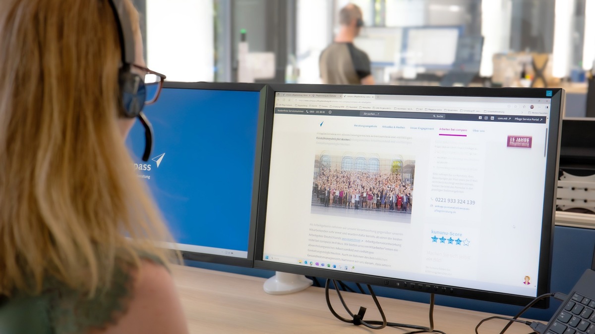 compass ist als unabhängige Tochter des PKV-Verbandes mit circa 1.000 Mitarbeitenden bundesweit tätig. Die compass-Pflegeberater*innen beraten im Rahmen von Telefonaktionen sowie zu den regulären Service Zeiten zu allen Fragen rund um das Thema Pflege.