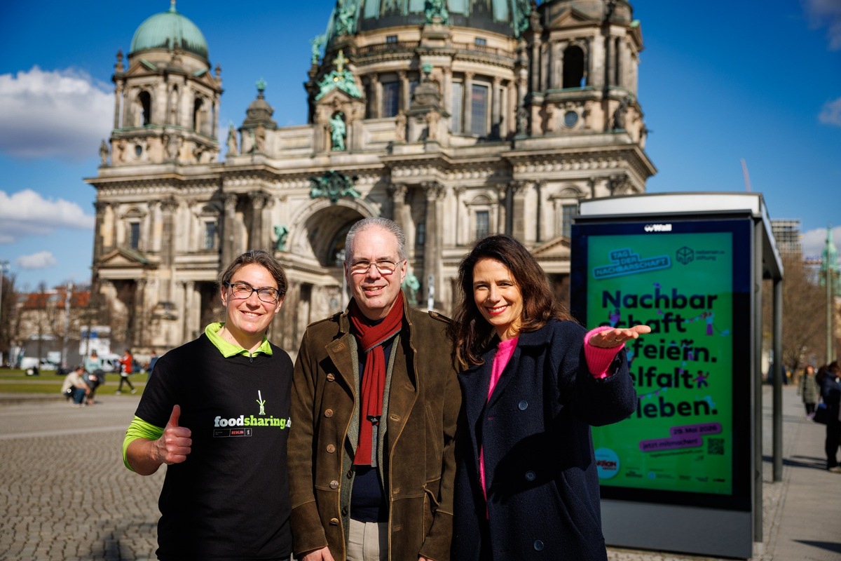 Mehr als 3000 Plakate in Berlin, Hamburg, Köln, Stuttgart, Bremen, Dresden, Saarbrücken, Mannheim, Rostock, Lübeck, Potsdam, Ludwigshafen und Kaiserslautern rufen in den kommenden Wochen Menschen dazu auf, sich beim Tag der Nachbarschaft 2026 anzumelden und vor Ort ihre Ideen für Engagement und Vielfalt zu gestalten. Die Kampagne mit einem ausdrucksstarken Motiv soll Nachbarschaften aktivieren, sich für den sozialen Zusammenhalt einzusetzen. Seit dem 16. März 2026 können Veranstaltungen auf der Website in die dazugehörige interaktive Deutschlandkarte eingetragen werden. So können sich alle in der Wohnumgebung daran beteiligen.