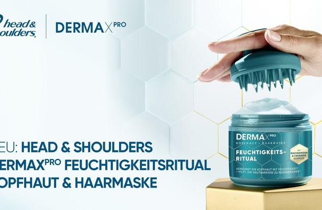 Die Kopfhautexpert:innen von Head & Shoulders erweitern die beliebte DERMAXPRO Produktlinie "Pflegende Feuchtigkeit" um die erste Kopfhaut- und Haarmaske. Ab Februar ist das neue Feuchtigkeitsritual im Handel erhältlich. Die regenerierende DERMAXPRO Kopfhaut- und Haarmaske mit Niacinamiden und Ceramide-Komplex hilft, die Hautbarriere zu reparieren* und versorgt Kopfhaut und Haar mit Feuchtigkeit, ohne zu beschweren. So kombiniert die Maske Kopfhautpflege mit Haarpflege. Das Ergebnis: eine Beauty-Routine für eine gesunde Kopfhaut und schönes Haar.