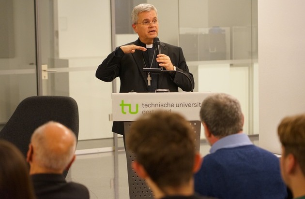Dortmund/Paderborn (pdp). Mit großem Publikumsandrang, darunter auffallend vielen jüngeren Besucherinnen und Besuchern, fand am Donnerstagabend, 20. November 2025, im Dortmunder U die Podiumsdiskussion der Reihe „rethinking religion. Gespräche über Religion im Erzbistum Paderborn“ statt. Unter dem Leitgedanken „Wie kann Zukunft gelingen?“ diskutierten der Paderborner Erzbischof Dr. Udo Markus Bentz, der Physiker und Philosoph Professor Dr. Armin Grunwald und die Salzburger Theologin Dr. Franca Spies über Perspektiven einer gelingenden Zukunft in Zeiten globaler Krisen, tiefgreifender Veränderungen und wachsender gesellschaftlicher Unsicherheiten. Organisiert wurde die Veranstaltung von der Theologischen Fakultät Paderborn und der Professur für Systematische Theologie der TU Dortmund.