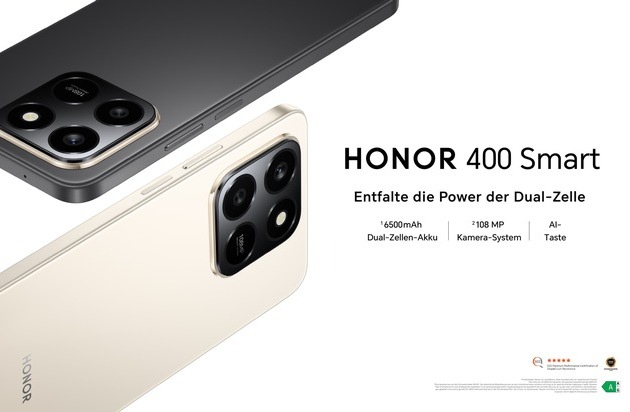 HONOR, weltweit führender Anbieter eines KI-Geräte-Ökosystems, gab heute die Einführung des HONOR 400 Smart bekannt. Das leistungsstarke und besonders haltbare Budget Smartphone setzt einen neuen Industriestandard. Mit dem funktionsreichen Smartphone adressiert HONOR die Bedürfnisse preisbewusster Verbraucher und erfüllt deren Wunsch nach einer KI-Interaktion in mobilen Geräten. Das HONOR 400 Smart überzeugt mit Eigenschaften wie einer 5-Sterne-Premium-Sturzfestigkeit, IP54-Spritzwasserschutz, einem robusten 6500-mAh-Dual-Zellen-Akku und einer praktischen Instant-KI-Taste.