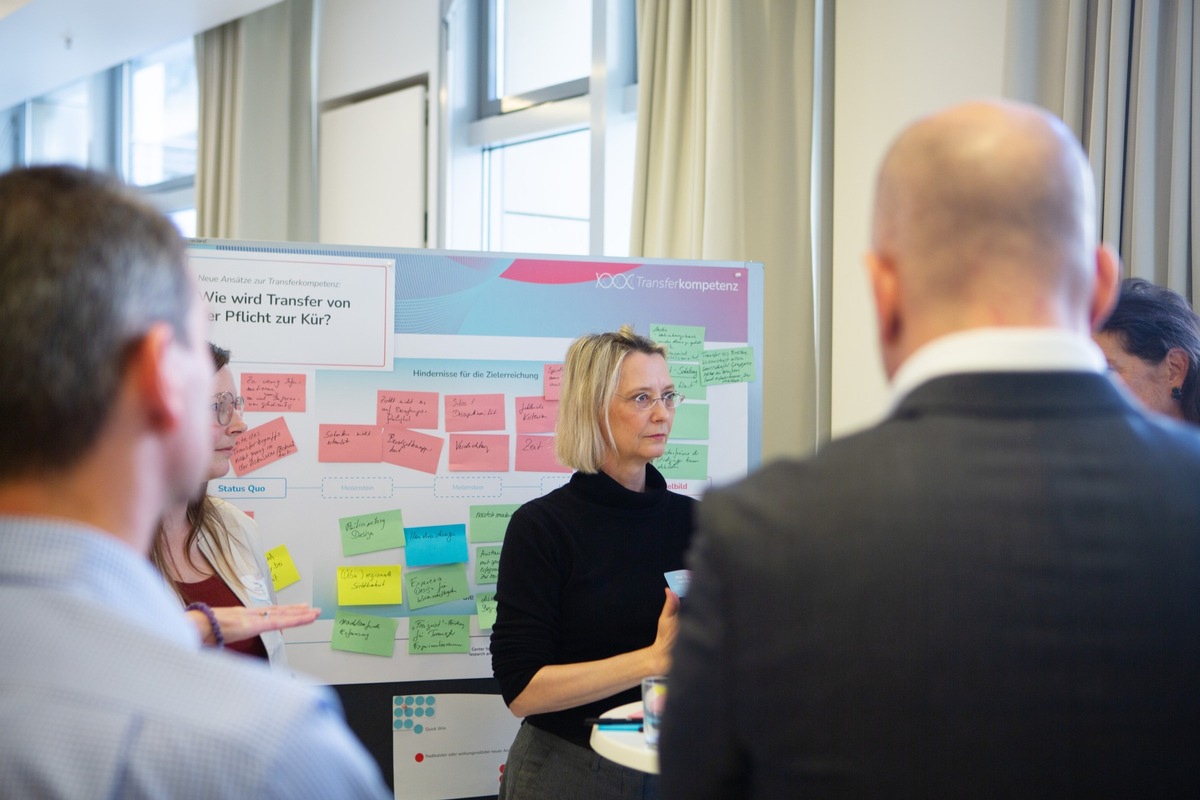 Im Rahmen des Fachgesprächs „Transfer – nicht weiter wie bisher“ entwickelten arrivierte Gestalterinnen und Gestalter von Transfer und dessen Rahmenbedingungen Perspektiven für die Weiterentwicklung und Gestaltung einer Transferkultur in Deutschland. Die Teilnehmenden erprobten selbst die Transfer-Box und sind begeistert: „Nicht weiter wie bisher – das bedeutet für uns, Transfer offen zu denken. Inhaltlich vielfältig, mit diversen Kooperationspartnern und ganz unterschiedlichen Zielen. Nur wenn wir das schaffen und transferaktive Forscherinnen und Forscher ernsthaft und pragmatisch unterstützen, können wir es schaffen, dass Wissenschaft zur unüberhörbaren Stimme in Politik und Gesellschaft wird“, sagt Prof. Dr. Martina Schraudner, Professorin an der Technischen Universität Berlin und Wissenschaftliche Leiterin des CeRRI.
